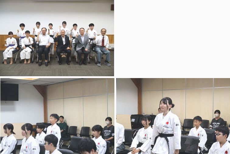 7月27日、小中全国大会出場者8名は、紫波町を表敬訪問しました。訪問に対し、町長、副町長、教育長さんに対応して頂きました。出場者を代表して、小島悠君、中田百々花さんが元気よく決意を表明しました。出場は、町三役の対応に緊張しながらも、頑張ることを心に決めていました。