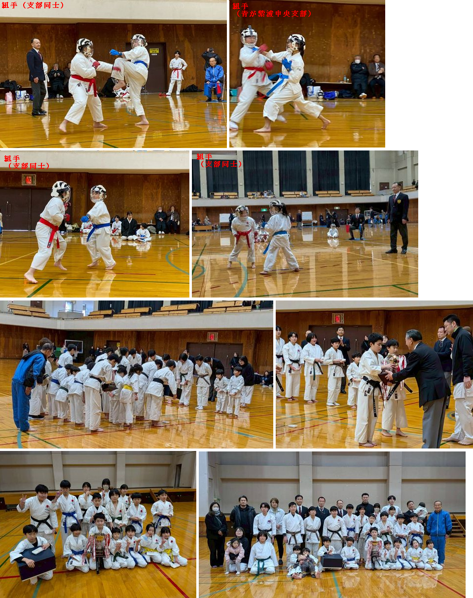 令和8年1月11日に行われた紫波町武道大会空手道競技に出場しました。年長さんから中学生までが出場しました。皆よく頑張り総合優勝することが出来ました。